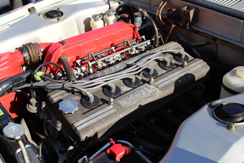 ボンネットの中もご覧のような素晴らしいコンディション。エンジンは1998ccのSOHC直列6気筒 L20ユニット。最高出力130ps/6000r.p.m.、最大トルク17.5kg-m/4400r.p.m.というスペックを誇りますが、1095kgという軽い車重もあってか、体感的にはそれ以上のパフォーマンスを発揮しているように感じられます。長年大事に乗られてきた個体らしくエンジンは今でも一発始動。雑味なく滑らかに回るエンジンは、静かなアイドリングを奏でます。