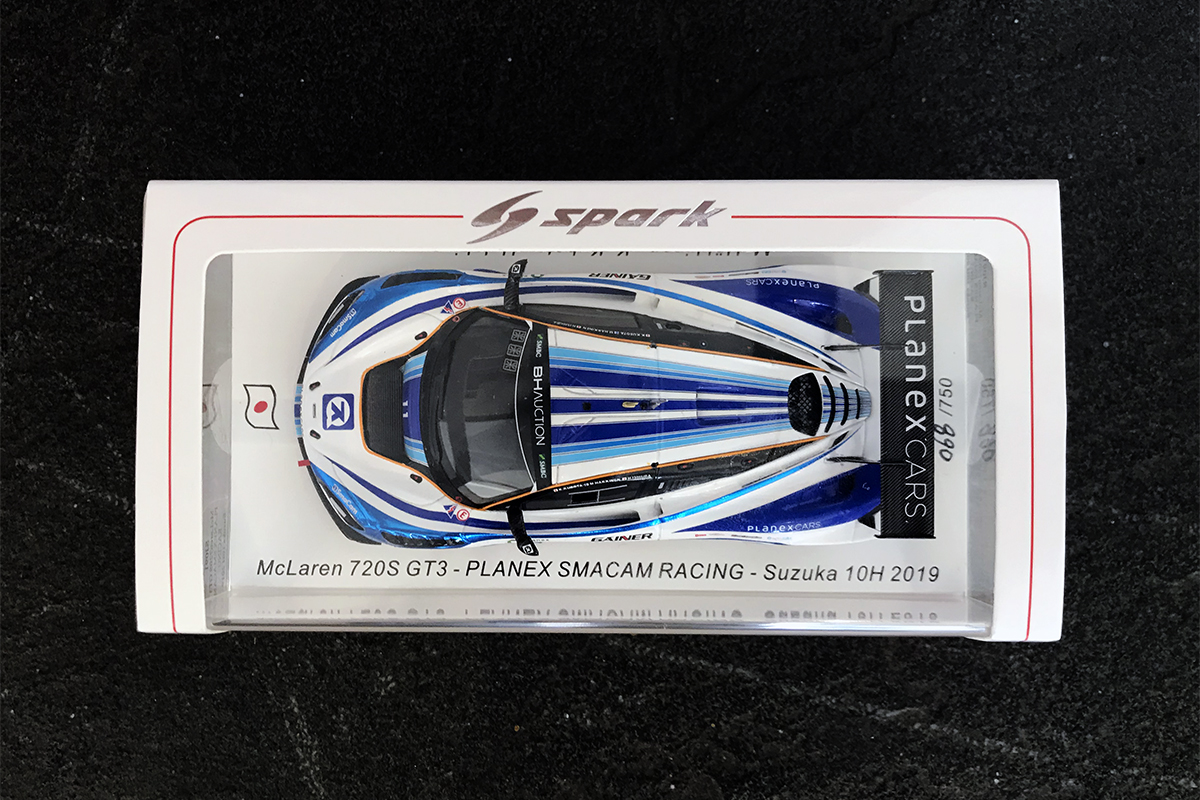 2019年に鈴鹿で開催されたGT3世界一決定戦『BH AUCTION SMBC SUZUKA 10HOURS』に出場し、初参戦ながらミカ・ハッキネン、石浦宏明、久保田克昭のドライブで見事に22位、PROクラス18位で完走を果たした『スマカメ・マクラーレン720S GT3』の1/43スケール・ミニチュアカーが、Spark model(スパークモデル)から発売されます!