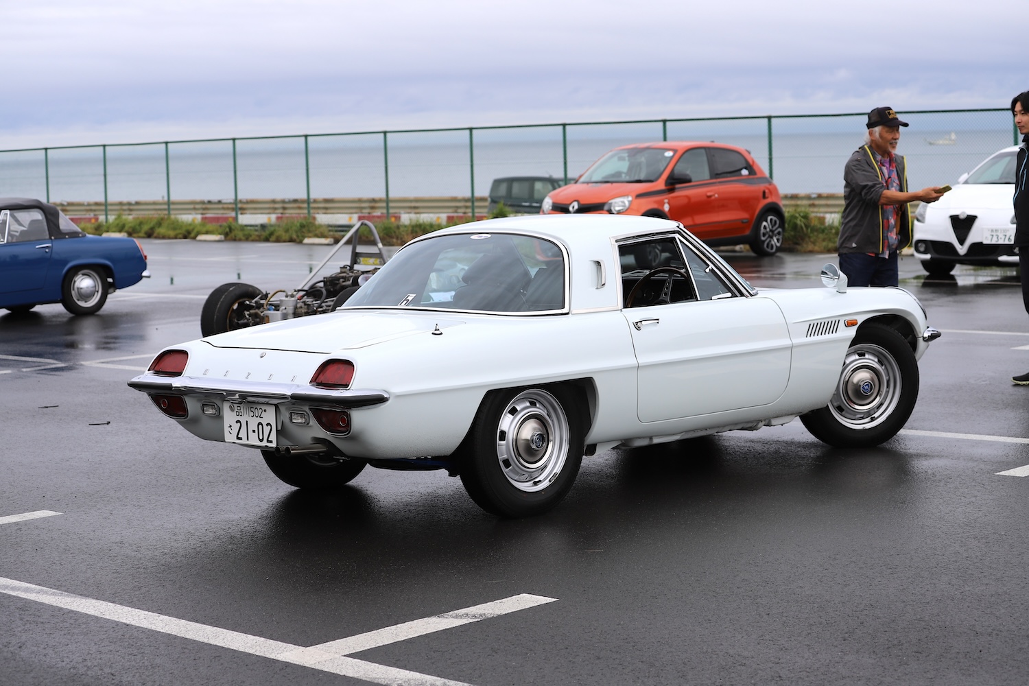後ろ姿を見るだけでも惚れ惚れするほど美しい、日本の至宝といっていいコスモスポーツ。またこういう機会がありましたら、素晴らしいロータリー・サウンドをお聞かせしたいと思っております。