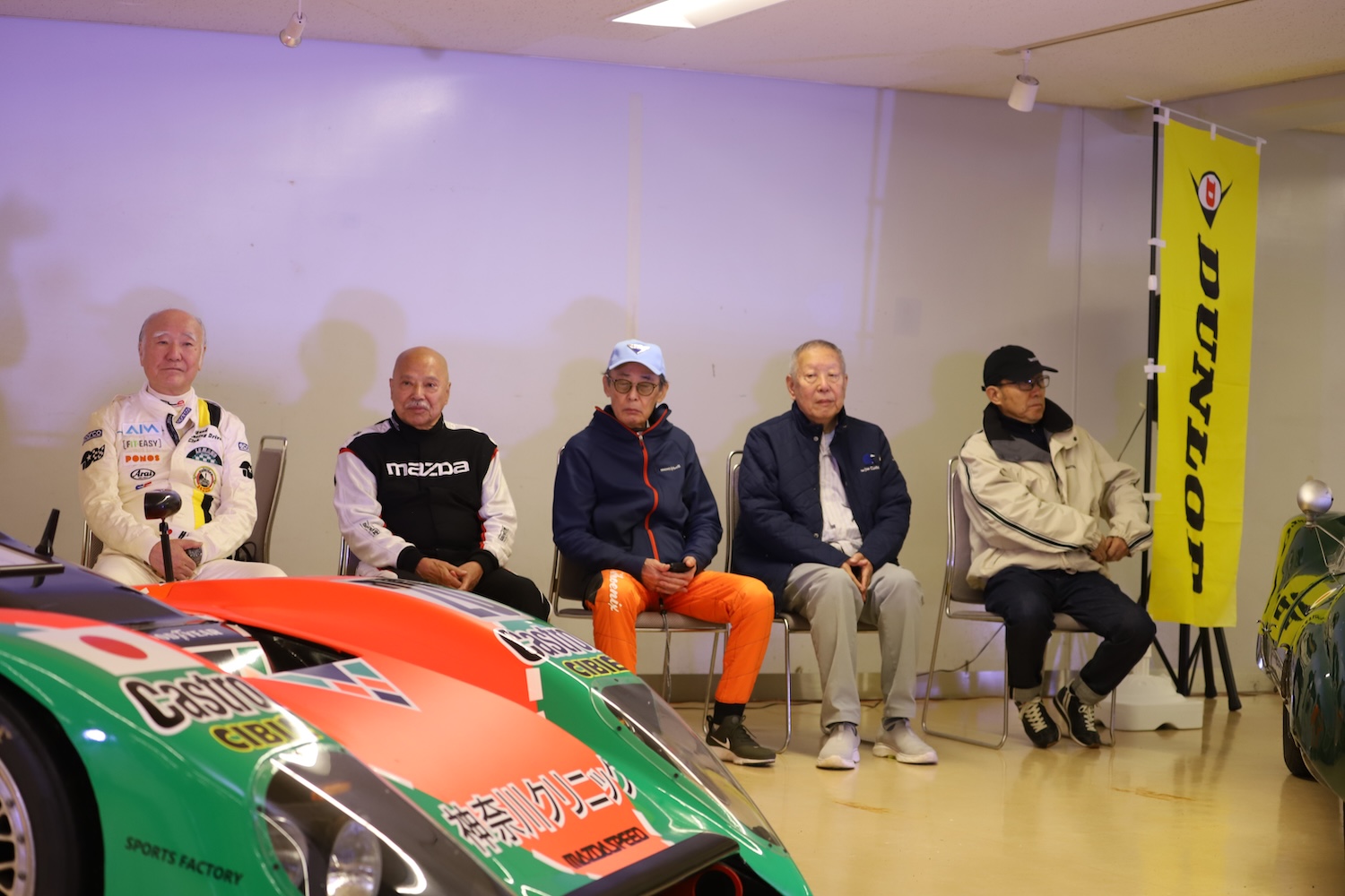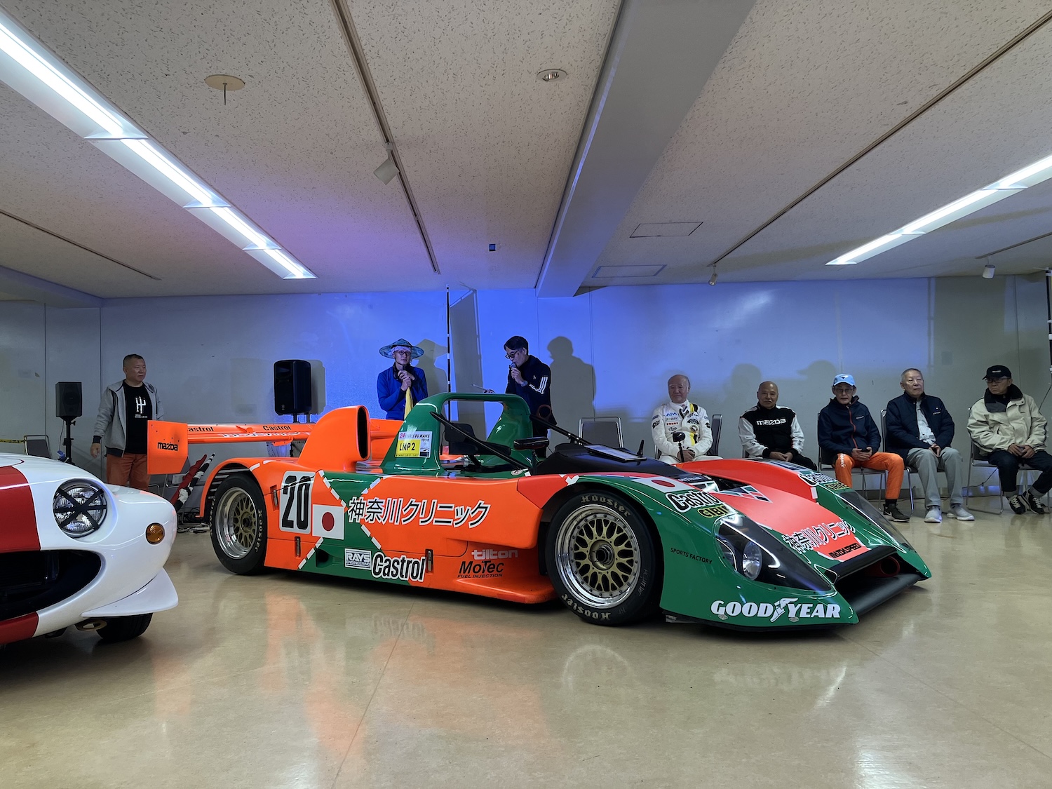 そんな今回のイベントでは、鮒子田寛さん、寺田陽次郎さん、見崎清志さん、林みのるさん、由良拓也さんという、日本を代表するレジェンド・レーシングドライバー、レーシングカー・エンジニアの皆さんが集合。国江仙嗣さんが所有する1996年にル・マンで25位完走を果たしたクズDLMマツダを前に、ル・マン24時間、富士GCシリーズをテーマに1時間近い熱いトークショーが繰り広げられました。