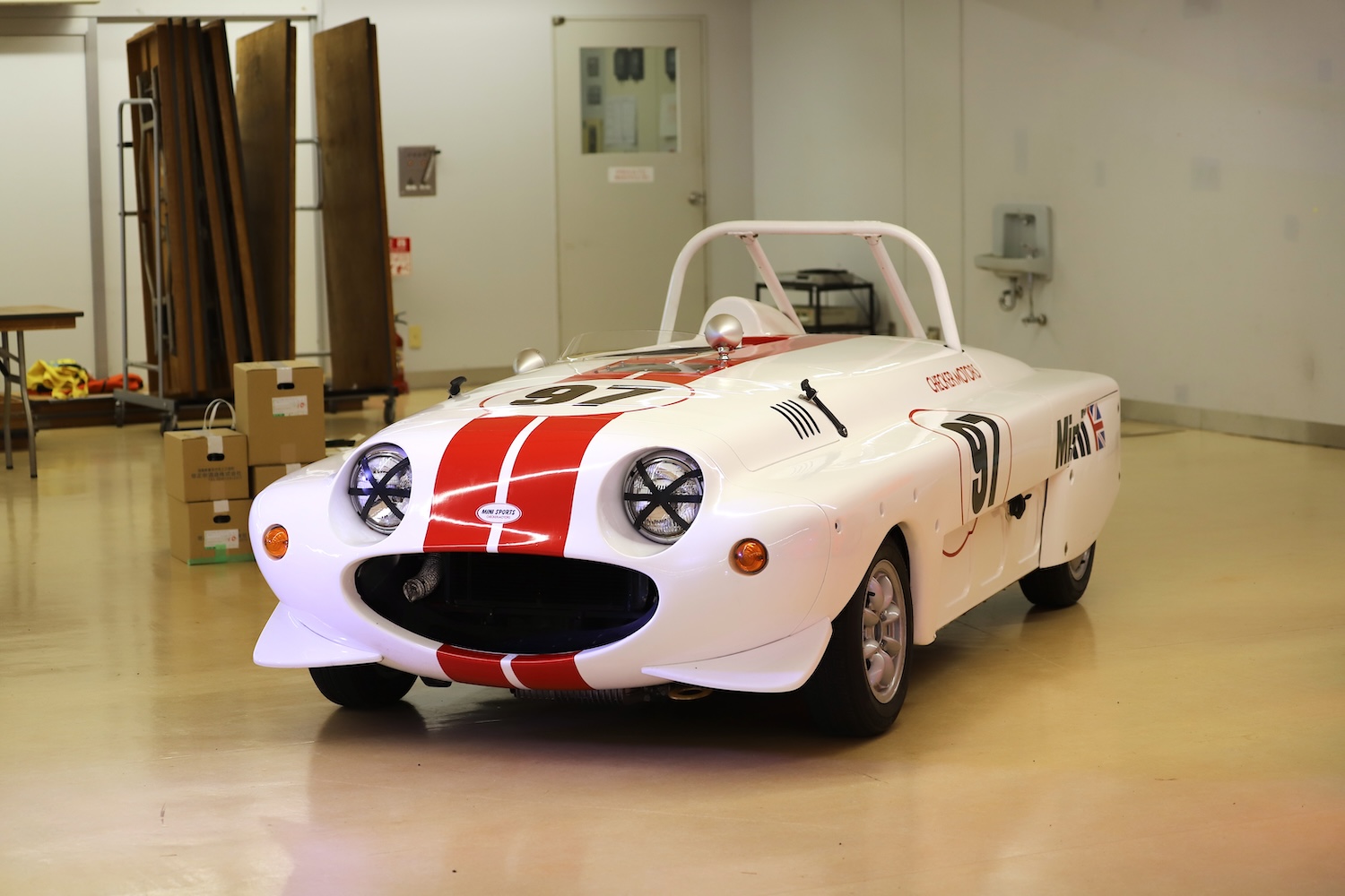 あと会場にはこんなレアマシンも。これはカジバ製ミニ・モークをベースに由良拓也さんがデザインしたワンメイクレース用のモーク・スポーツ。当時チェッカー・モータースのワークスカーとして使われていた個体です。