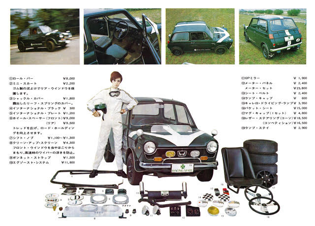 実はこれ、1960年代に式場壮吉氏、徳大寺有恒氏から立ち上げた伝説のカスタム・ブランド「RACING MATE」がホンダN360に用意したカスタム・パーツをモチーフに、生沢徹氏がプロデュースし、現代流に仕立て上げたものだったのです!確かにこのパンフレットを見ると、そのエッセンスがよく再現されているのがわかります。