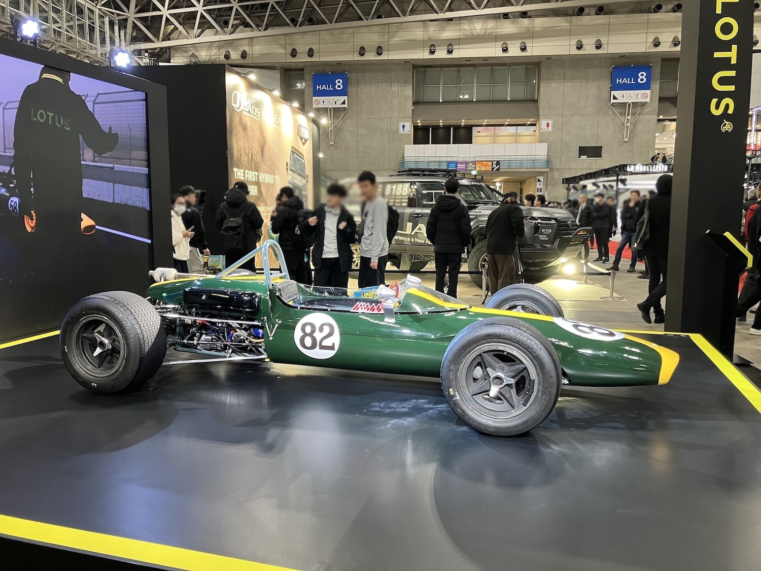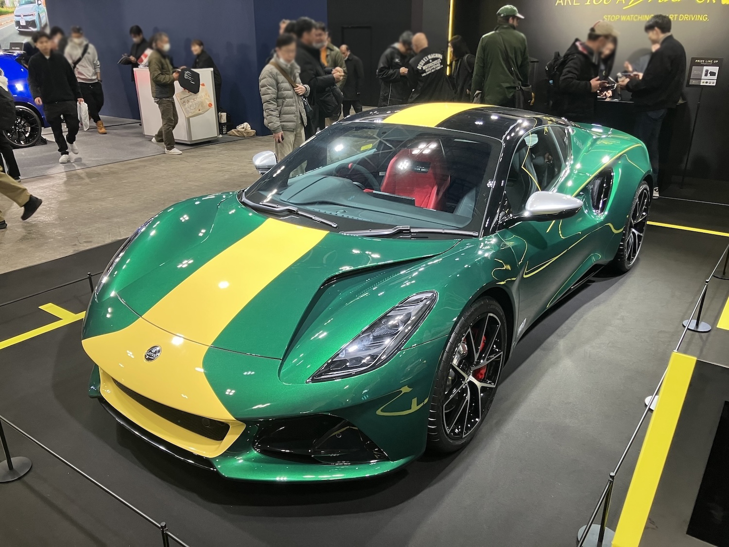 ロータス・ブースにはジム・クラークのF1&インディ500ダブル・クラウンから50周年となるのを記念して昨年発表されたエミーラ・クラーク・エディションを展示。往年のグリーン&イエローのボディカラー、ドライバー側だけ赤いトリムで覆われたコクピットなどが特徴的。実はすでに久保田もオーダー済みで、もうすぐ納車の予定。