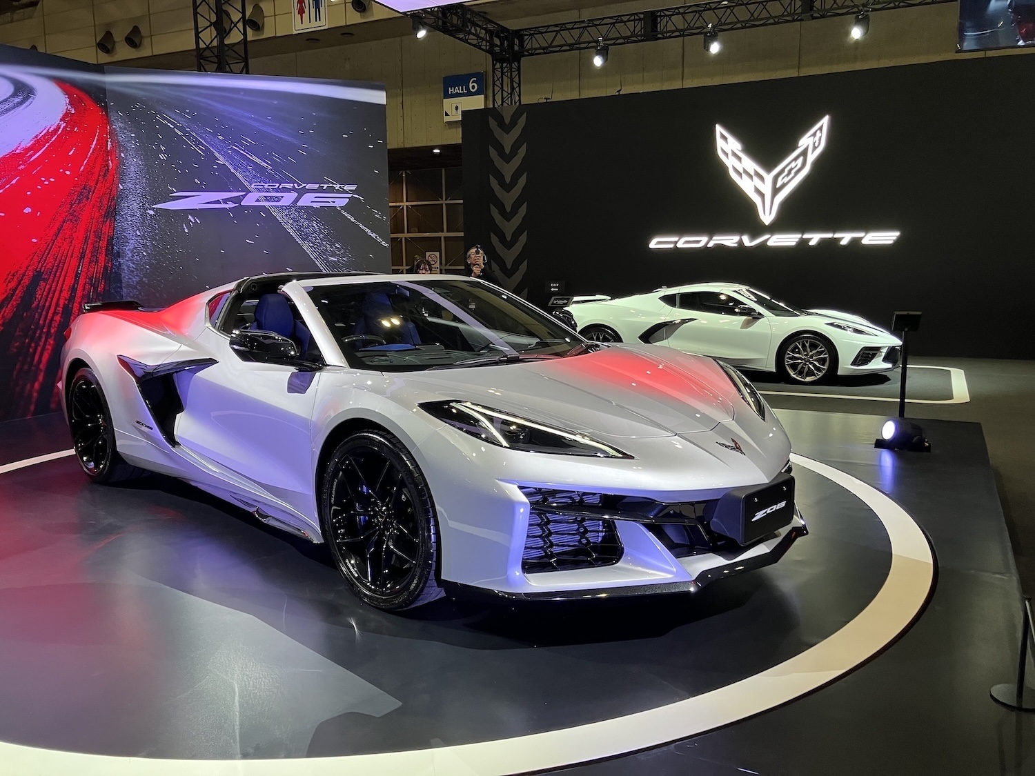 シボレー・コルベット・ブースでお披露目された最新のZ06コンバーチブル。ミッドの5.5リッターV8は最高出力646PS、最大トルク623Nmを発揮。